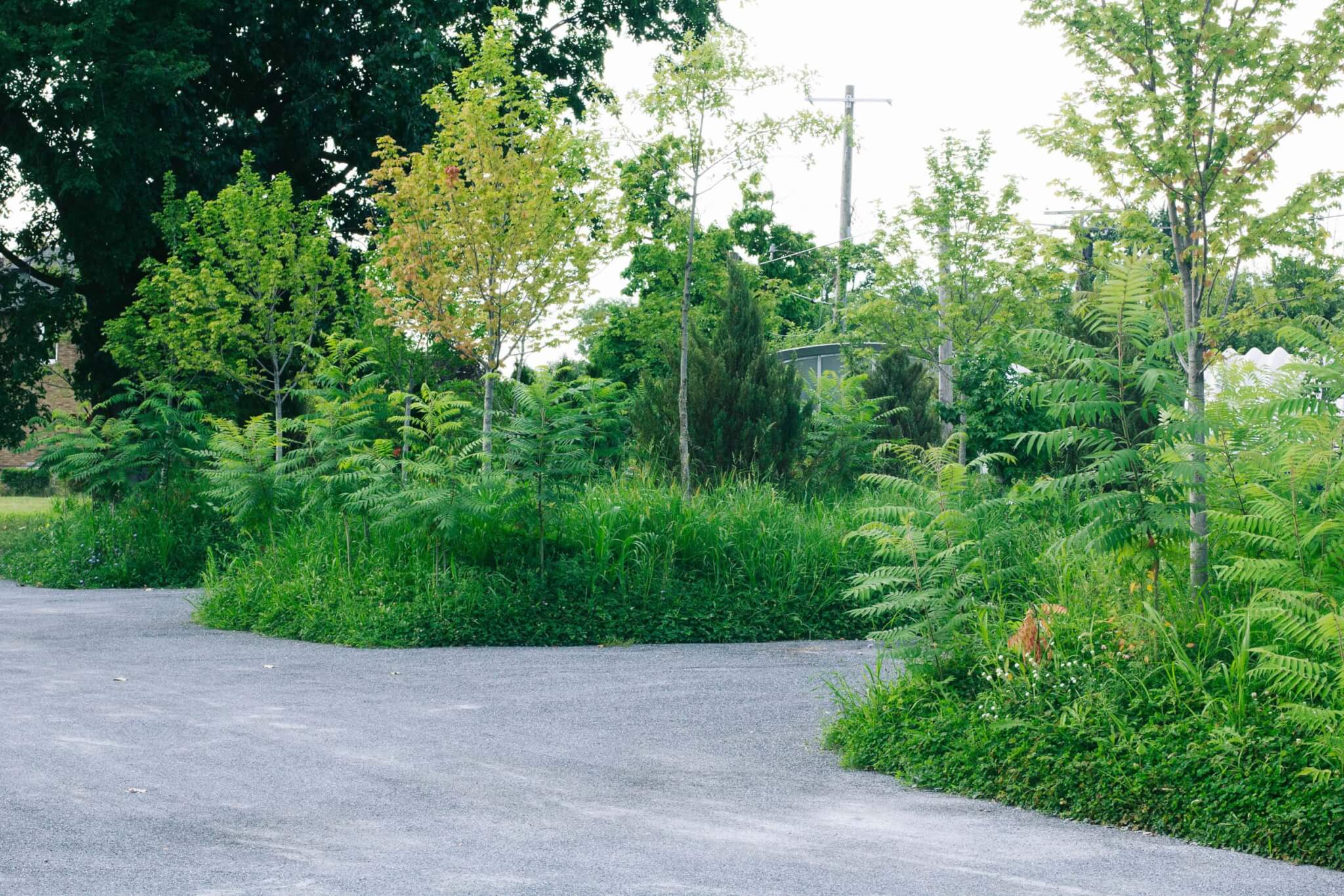 Approximately 540 cubic yards of soil were imported and formed into elongated earthen mounds, which were then planted with a mix of maple, juniper, and staghorn sumac, the latter sourced from a tree farm in the western part of the state. The other specimens came from Prince Concepts’ own nursery. “We go to tree farms all the time and we ask, ‘What do you have on sale that no one else is buying? We’ll take all of it,’” Kafka said.